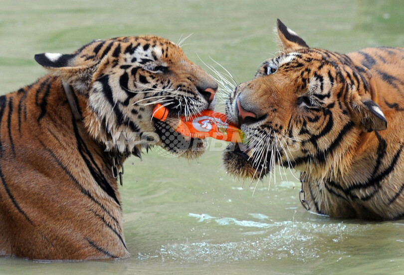 【4月26日 AFP】タイ西部カンチャナブリ(Karnchanaburi)県の通称「トラ寺院」では僧侶らによってトラが飼育されており、観光客も近くで触れ合うことができる。タイは、絶滅が危惧されるトラが生息する13か国のうちの1つで、密輸の拠点ともなっている。全世界でのトラの生息数は100年前の10万頭から現在は3200頭まで減少したと推定されている。(c)AFP