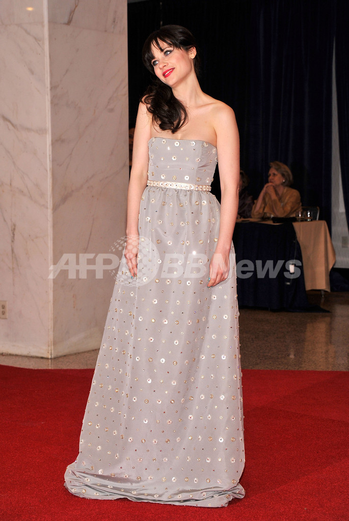 写真は同夕食会に出席する女優ゾーイ・デシャネル(Zooey Deschanel、2012年4月28日撮影)。(c)AFP/Getty Images/Stephen Lovekin