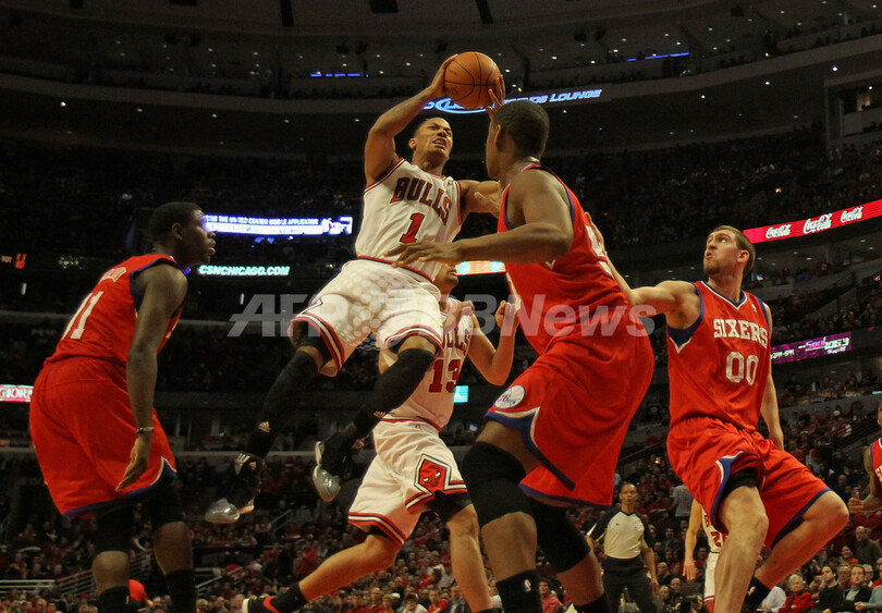 【4月29日 AFP】11-12NBAは28日、プレーオフ1回戦(7回戦制)が各地で開幕し、シカゴ・ブルズ(Chicago Bulls)は103-91でフィラデルフィア・セブンティシクサーズ(Philadelphia 76ers)に勝利したが、大黒柱のデリック・ローズ(Derrick Rose)が終盤に左ひざを負傷し、今季絶望となった。