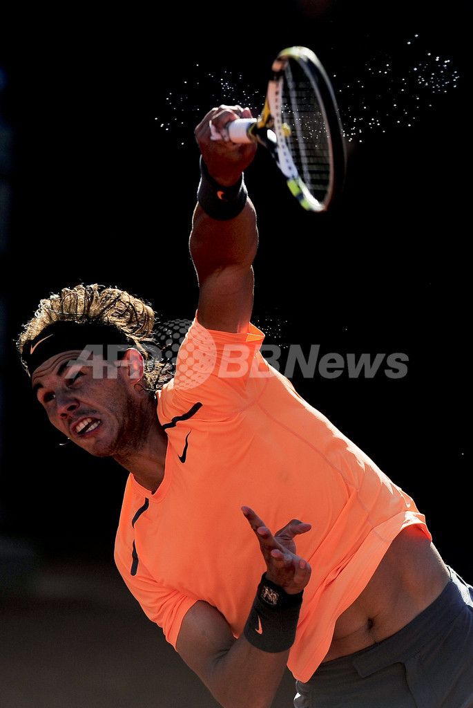 バルセロナ・オープンで通算34連勝を飾っているナダルは、クレーコートでの大会の決勝戦での戦績を通算34勝4敗としている。敗戦の内訳は、ロジャー・フェデラー(Roger Federer、スイス)とノバク・ジョコビッチ(Novak Djokovic、セルビア)に2敗ずつとなっている。(c)AFP/Scott Williams