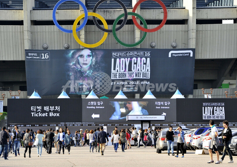 レディー・ガガの韓国公演、会場にはファンの他に反対派も