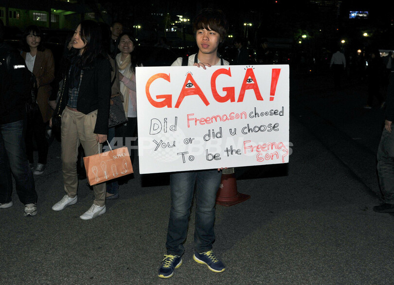 レディー・ガガの韓国公演、会場にはファンの他に反対派も