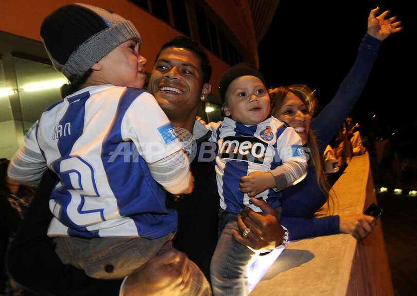 本拠地ドラゴン・スタジアム(Dragao Stadium)で家族と優勝決定を喜ぶFCポルトのフッキ(Hulk、2012年4月29日撮影)。(c)AFP/FERNANDO VELUDO
