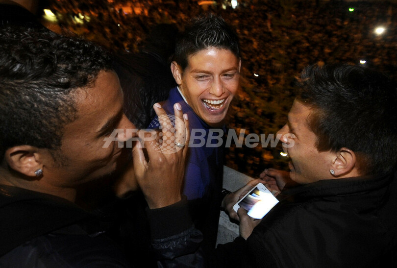 本拠地ドラゴン・スタジアム(Dragao Stadium)で優勝決定を喜ぶFCポルトの(左から)ダニーロ(Danilo Luiz da Silva)、ハメス・ロドリゲス(James Rodriguez)、フアン・マヌエル・イトゥルベ(Juan Manuel Iturbe、2012年4月29日撮影)。(c)AFP/FERNANDO VELUDO