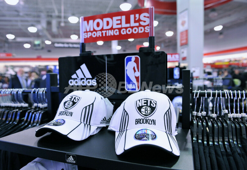会見で発表されたブルックリン・ネッツのロゴの入った帽子(2012年4月30日撮影)。(c)AFP/Getty Images/NBAE/David Dow