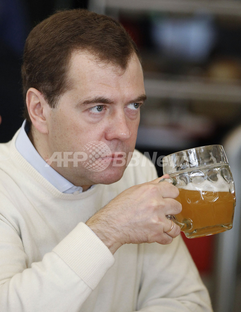 【5月2日 AFP】ロシア・モスクワ(Moscow)の旧ソビエト連邦時代から親しまれているパブで1日、メーデーを祝いウラジーミル・プーチン(Vladimir Putin)首相とドミトリー・メドベージェフ(Dmitry Medvedev)大統領がビールを手に旧ソ連時代の思い出にふける姿が見られた。