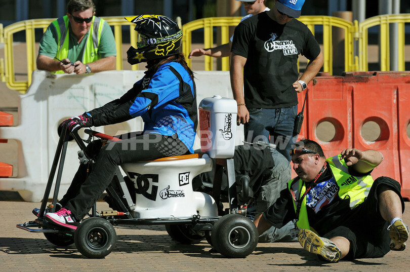 女性で初めてダートバイクでのバックフリップを成功させ、ギネス記録に認定されているヴァン・ヴュットは、レギュラーを務めている米リアリティ番組「ナイトロ・サーカス(Nitro Circus)」のスタントショーに出演するためオーストラリアを訪れていた。(c)AFP
