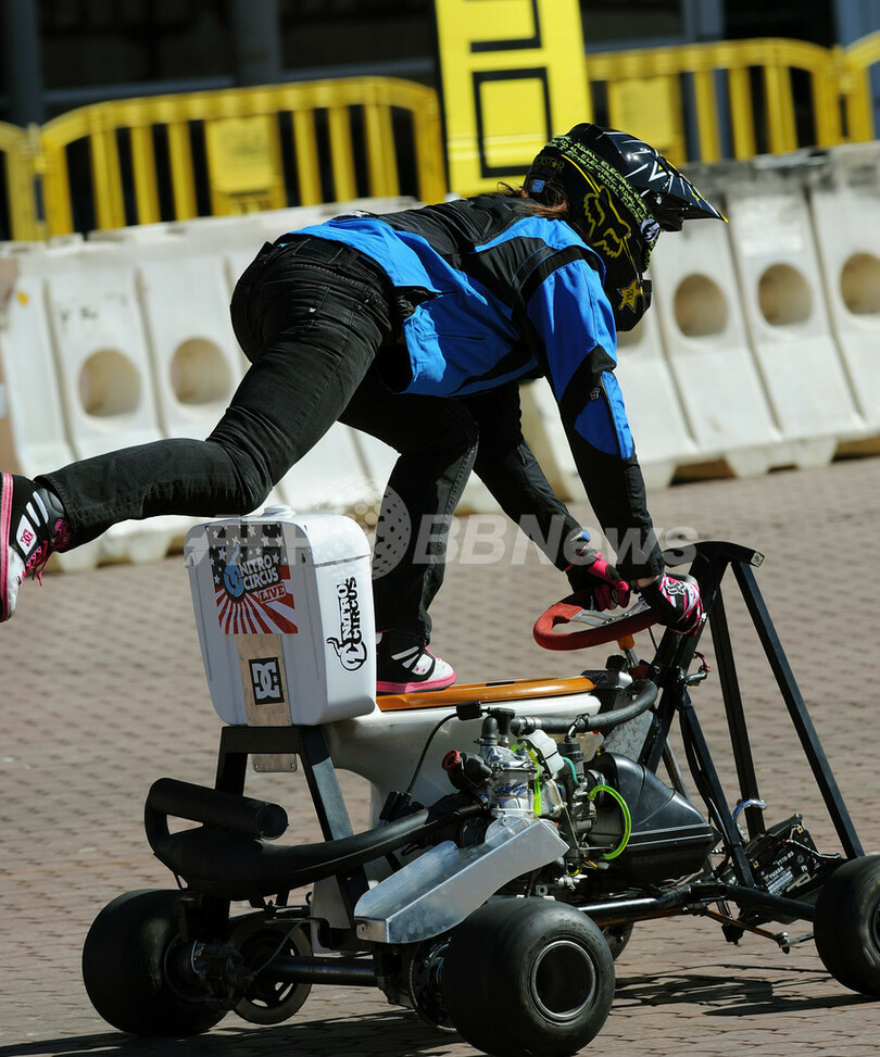 【5月2日 AFP】(写真追加)カナダのスタントウーマン、ジョリーン・ヴァン・ヴュット(Jolene Van Vugt、31)が2日、オーストラリアのシドニー(Sydney)で「モーター付きトイレ」のギネス世界記録(Guinness World Records)に挑戦し、新記録を叩きだした。