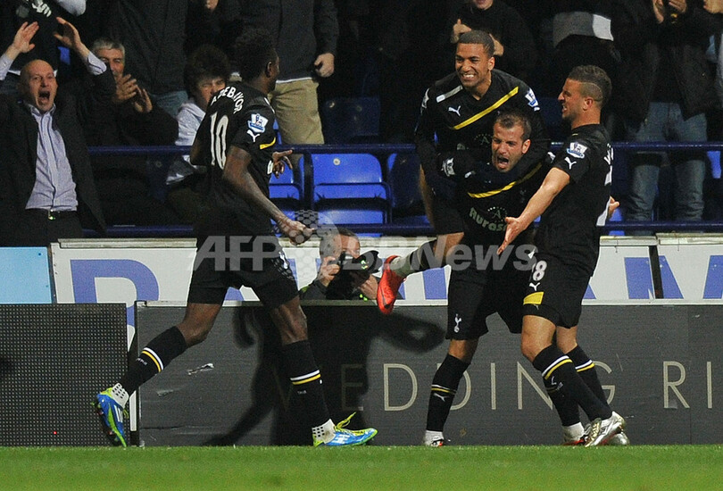 一方勝利したトッテナムは、2012年のアウェー戦初勝利を飾って3位アーセナル(Arsenal)に勝ち点差1と迫り、6位チェルシーとの勝ち点差を4に広げている。(c)AFP/Julian Guyer