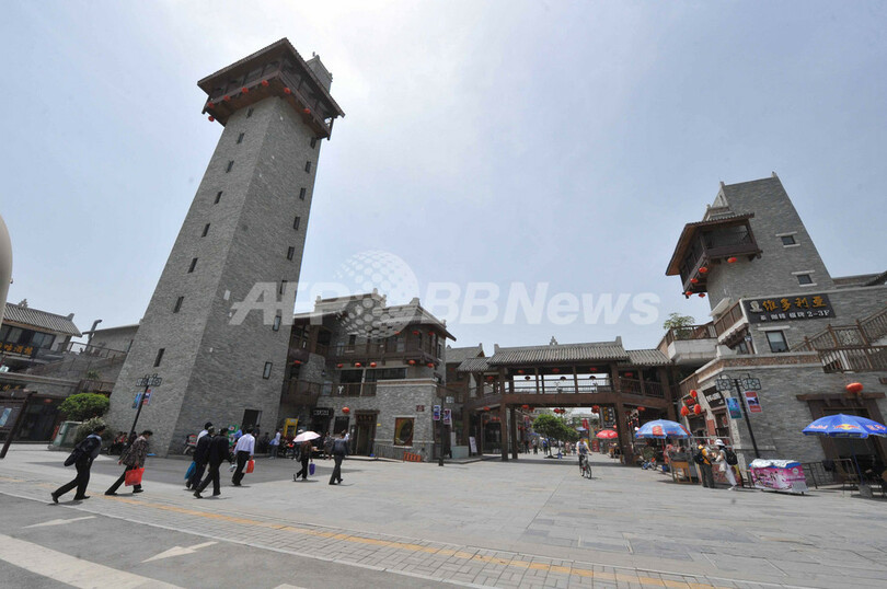 写真は、四川大地震後に新しく作られた中国・四川省北川(Beichuan)県の街に到着した訪問者ら(2012年4月30日撮影)。(c)AFP