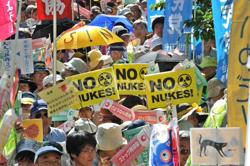 写真は、都内の公園に集結し脱原発を訴える人々(2012年5月5日撮影)。(c)AFP/KAZUHIRO NOGI