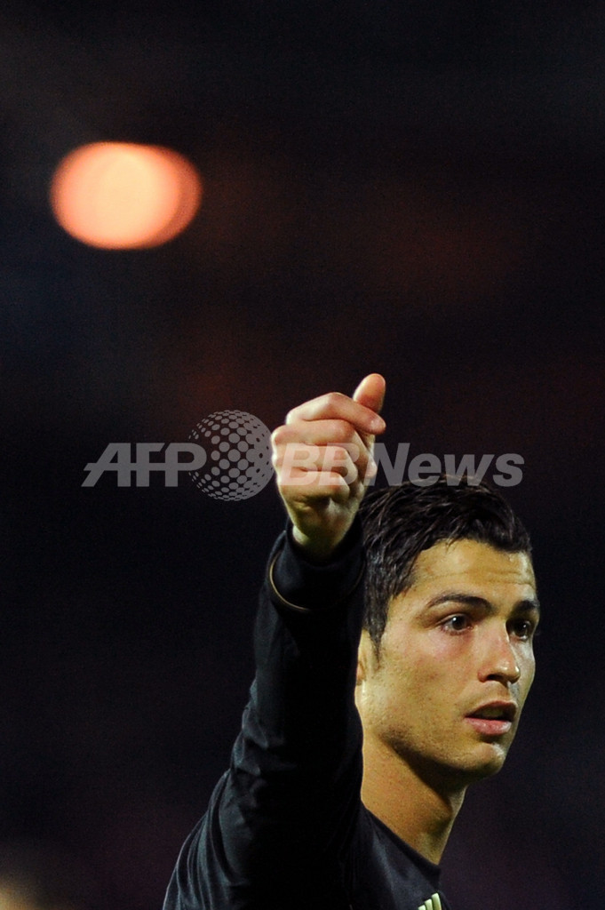 合図を送るレアル・マドリードのクリスティアーノ・ロナウド(Cristiano Ronaldo、2012年5月5日撮影)。(c)AFP/JORGE GUERRERO