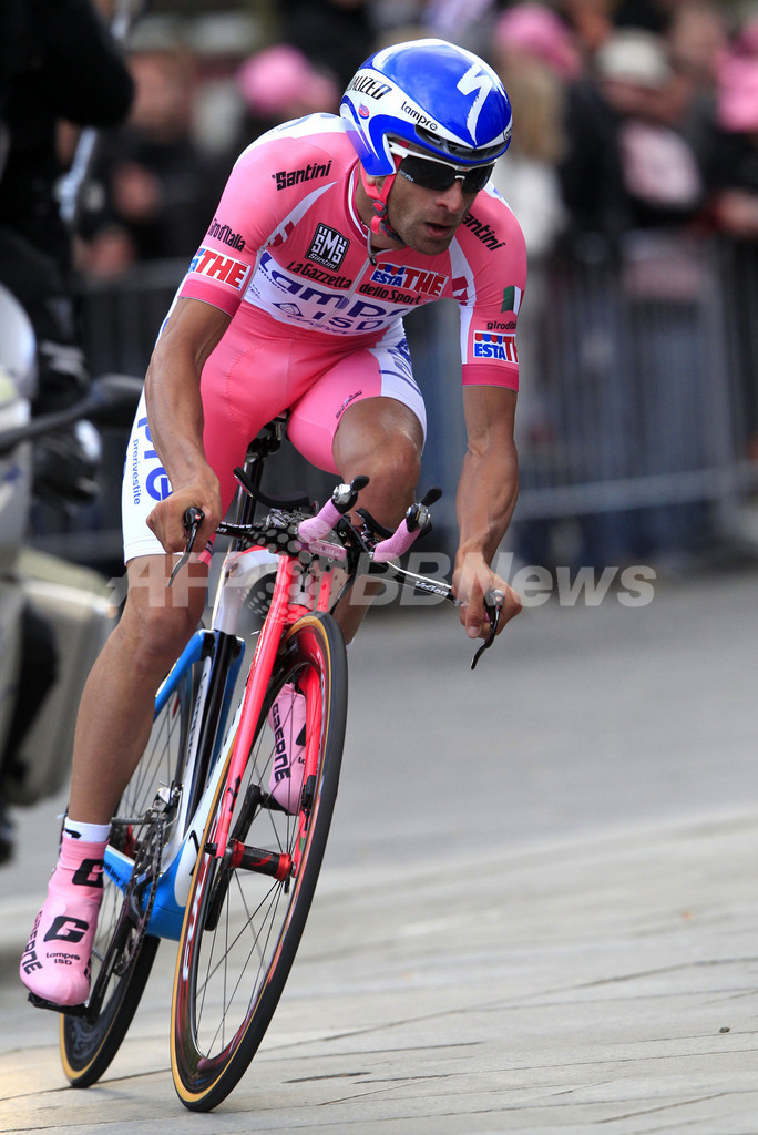11分32秒を記録し、135位と出遅れたランプレISD(Lampre ISD)のミケーレ・スカルポーニ(Michele Scarponi、2012年5月5日撮影)。(c)AFP/LUK BENIES