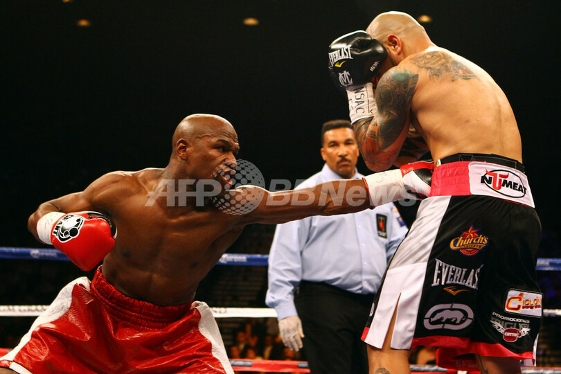 【5月6日 AFP】ボクシング、WBAスーパーウェルター級タイトルマッチ12回戦が5日、米ネバダ(Nevada)州ラスベガス(Las Vegas)のMGMグランドアリーナ(MGM Grand Arena)で行われ、挑戦者のフロイド・メイウェザー・ジュニア(Floyd Mayweather Jr.、米国)は、同級王者のミゲル・コット(Miguel Cotto、プエルトリコ)を3-0(117-111、117-111、118-110)の判定で破り、王座を奪取した。