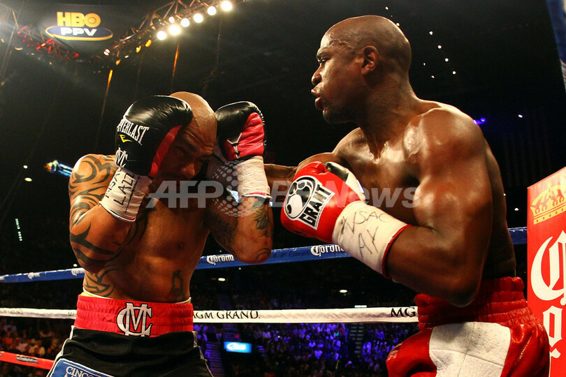 【5月6日 AFP】ボクシング、WBAスーパーウェルター級タイトルマッチ12回戦が5日、米ネバダ(Nevada)州ラスベガス(Las Vegas)のMGMグランドアリーナ(MGM Grand Arena)で行われ、挑戦者のフロイド・メイウェザー・ジュニア(Floyd Mayweather Jr.、米国)は、同級王者のミゲル・コット(Miguel Cotto、プエルトリコ)を3-0(117-111、117-111、118-110)の判定で破り、王座を奪取した。