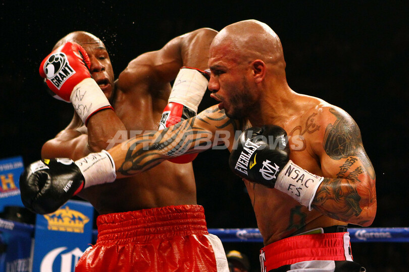 【5月6日 AFP】ボクシング、WBAスーパーウェルター級タイトルマッチ12回戦が5日、米ネバダ(Nevada)州ラスベガス(Las Vegas)のMGMグランドアリーナ(MGM Grand Arena)で行われ、挑戦者のフロイド・メイウェザー・ジュニア(Floyd Mayweather Jr.、米国)は、同級王者のミゲル・コット(Miguel Cotto、プエルトリコ)を3-0(117-111、117-111、118-110)の判定で破り、王座を奪取した。