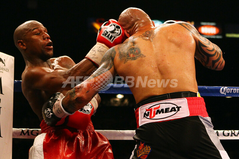 【5月6日 AFP】ボクシング、WBAスーパーウェルター級タイトルマッチ12回戦が5日、米ネバダ(Nevada)州ラスベガス(Las Vegas)のMGMグランドアリーナ(MGM Grand Arena)で行われ、挑戦者のフロイド・メイウェザー・ジュニア(Floyd Mayweather Jr.、米国)は、同級王者のミゲル・コット(Miguel Cotto、プエルトリコ)を3-0(117-111、117-111、118-110)の判定で破り、王座を奪取した。