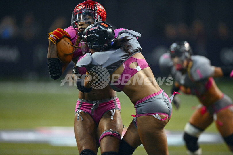 【5月6日 AFP】メキシコの首都メキシコ市(Mexico City)で5日、下着姿でアメリカンフットボールをする「ランジェリーフットボール(Lingerie Football)」の全米リーグのスターたちが一堂に会し、オールスター戦が行われた。(c)AFP