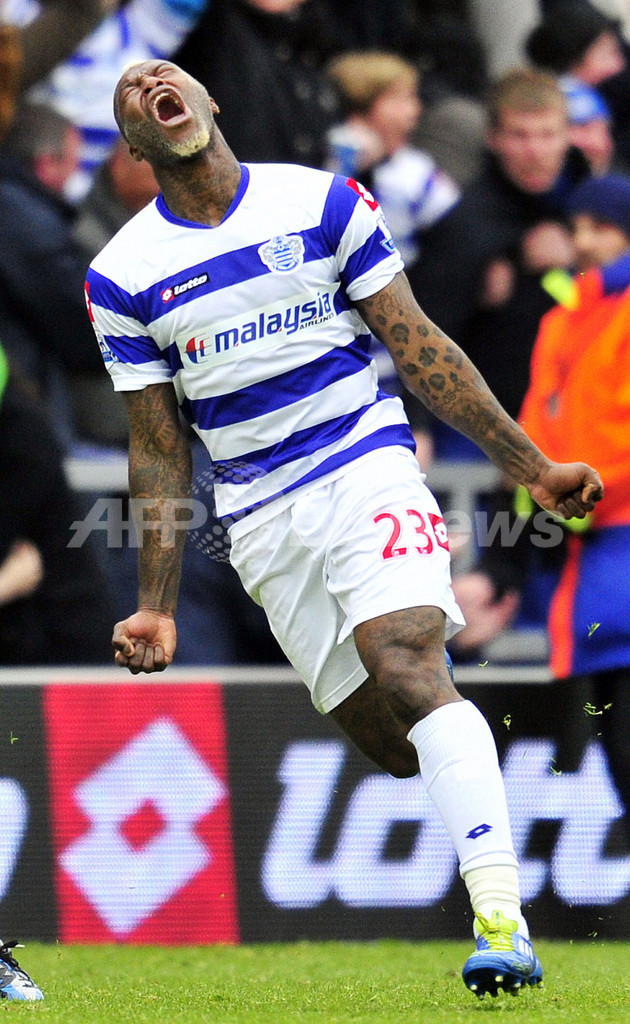 後半44分に先制点を決め歓喜するQPRのジブリル・シセ(Djibril Cisse、2012年5月6日撮影)。(c)AFP/GLYN KIRK
