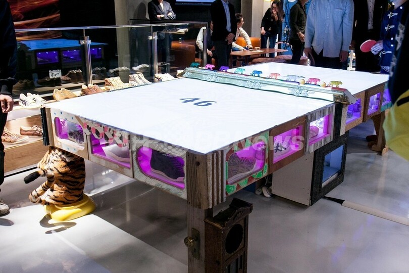 ブランド復活10周年を記念してオープンした表参道店は、黒壁と大きなウィンドウが印象的な2階建ての大型店舗。“古今東西”をコンセプトに、ヴィンテージ感と未来感や東洋と西洋をミックスしたオニツカタイガーらしい空間となっている。広々とした1階フロアではレギュラー商品を、アートピースのような卓球台が置かれた2階フロアでは「NIPPON MADE」シリーズや限定アイテムなどプレミアムなアイテムを展開。オープン記念として、NIPPON MADEシリーズの新作「BLACK LINE」全4型を先行発売している。