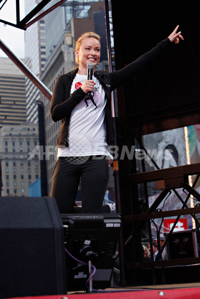 会場となったセントラルパークには、米化粧品メーカー「レブロン(Revlon)」のグローバル・ブランド・アンバサダーを務める女優のエマ・ ストーン(Emma Stone)とオリヴィア・ワイルド(Olivia Wilde)が登場し、イベントを盛り上げた。収益金は、乳がん、卵巣がんの研究に役立てられる。(c)AFP/Getty Images