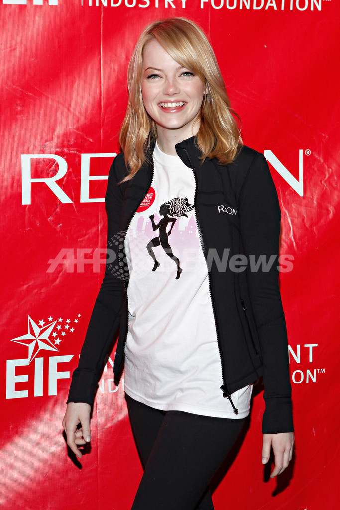 会場となったセントラルパークには、米化粧品メーカー「レブロン(Revlon)」のグローバル・ブランド・アンバサダーを務める女優のエマ・ ストーン(Emma Stone)とオリヴィア・ワイルド(Olivia Wilde)が登場し、イベントを盛り上げた。収益金は、乳がん、卵巣がんの研究に役立てられる。(c)AFP/Getty Images