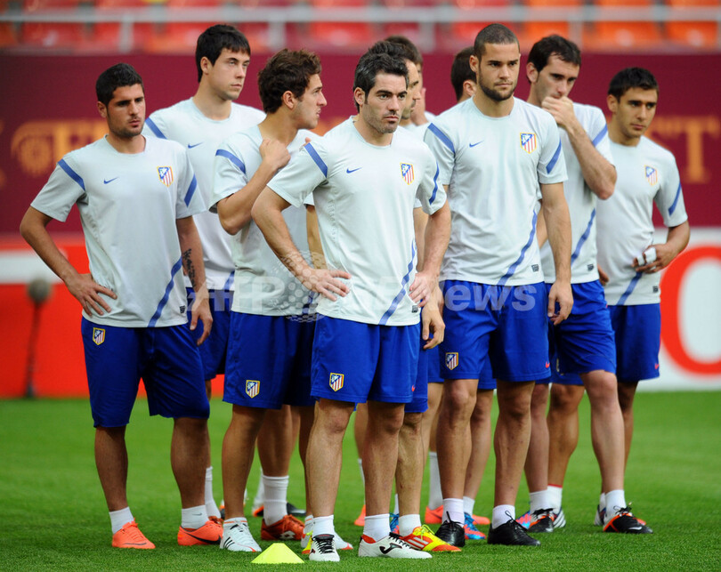 調整を行うアトレティコ・マドリードの選手(2012年5月8日撮影)。(c)AFP/PIERRE-PHILIPPE MARCOU