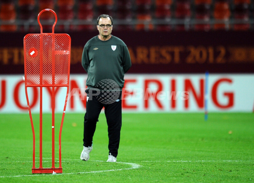 調整を行う選手を見守るアスレティック・ビルバオのマルセロ・ビエルサ監督(Marcelo Bielsa、2012年5月8日撮影)。(c)AFP/PIERRE-PHILIPPE MARCOU