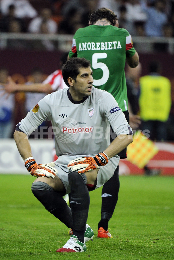前半34分に追加点を許し、落胆するアスレティック・ビルバオのGKゴルカ・イライソス(Gorka Iraizoz、手前、2012年5月9日撮影)。(c)AFP/ANNE-CHRISTINE POUJOULAT