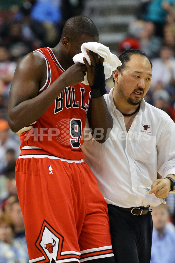 一方、プレーオフ開幕戦で左ひざの靱帯を負傷した大黒柱のデリック・ローズ(Derrick Rose)を失い、さらには第3戦でヨアキム・ノア(Joakim Noah)が足首を痛め欠場を余儀なくされたブルズは、ルオル・デン(Luol Deng)が19得点17リバウンド、リチャード・ハミルトン(Richard Hamilton)が19得点を記録した。(c)AFP