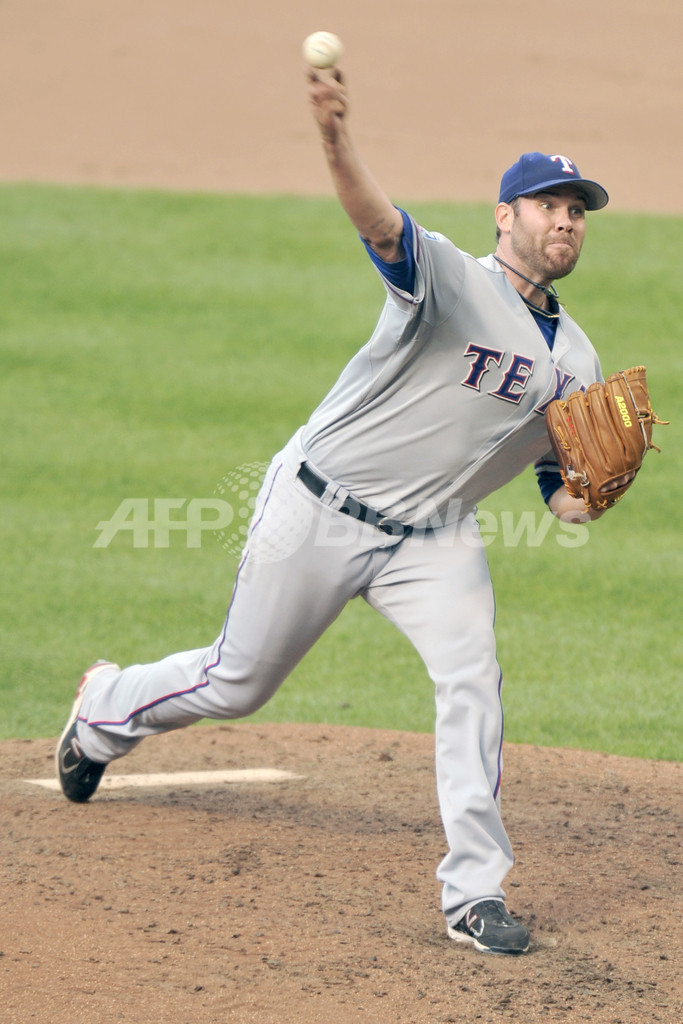 先発登板し、7回5安打6失点だったテキサス・レンジャーズのコルビー・ルイス(Colby Lewis、2012年5月10日撮影)。(c)AFP/Getty Images/Mitchell Layton