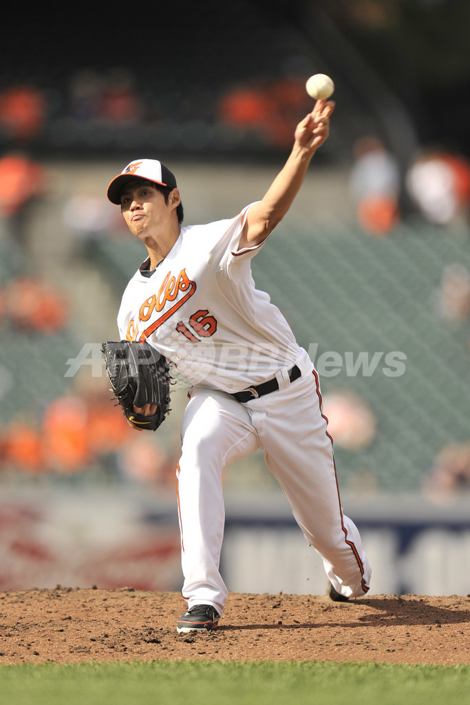 先発登板し、7回3分の2を投げて6安打2失点だったボルティモア・オリオールズの陳偉殷(Chen Wei-Yin、チェン・ウェイン、2012年5月10日撮影)。(c)AFP/Getty Images/Mitchell Layton