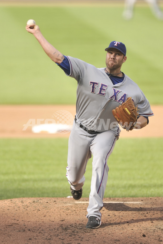 先発登板し、7回5安打6失点だったテキサス・レンジャーズのコルビー・ルイス(Colby Lewis、2012年5月10日撮影)。(c)AFP/Getty Images/Mitchell Layton