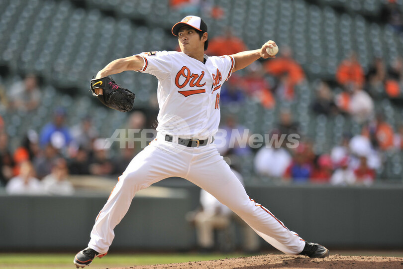 先発登板し、7回3分の2を投げて6安打2失点だったボルティモア・オリオールズの陳偉殷(Chen Wei-Yin、チェン・ウェイン、2012年5月10日撮影)。(c)AFP/Getty Images/Mitchell Layton
