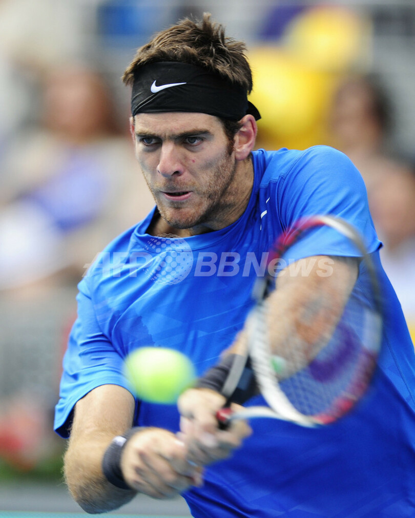 リターンを打つファン・マルティン・デルポトロ(2012年5月12日撮影)。(c)AFP/JAVIER SORIANO