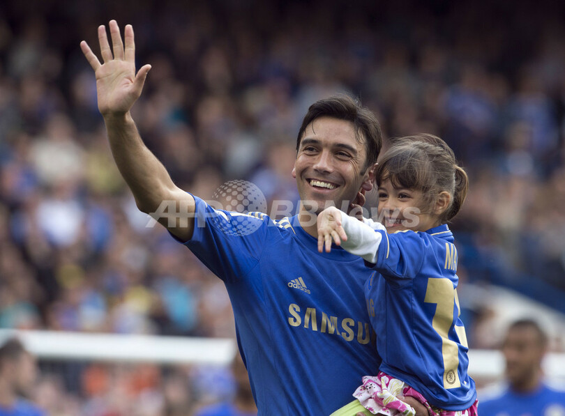 試合後、ファンの歓声に手を振って応えるチェルシーのパウロ・フェレイラ(Paulo Ferreira、2012年5月13日撮影)。(c)AFP/MIGUEL MEDINA