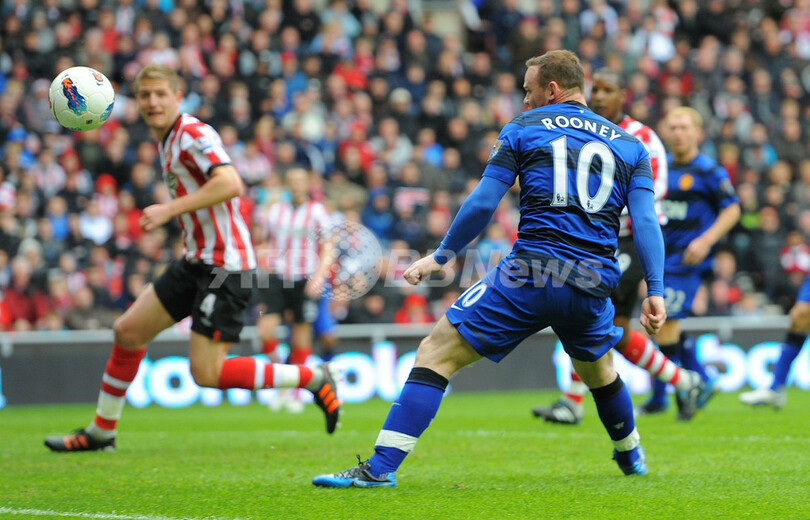 前半20分に先制点を挙げるマンチェスター・ユナイテッドのウェイン・ルーニー(Wayne Rooney、2012年5月13日撮影)。(c)AFP/ANDREW YATES