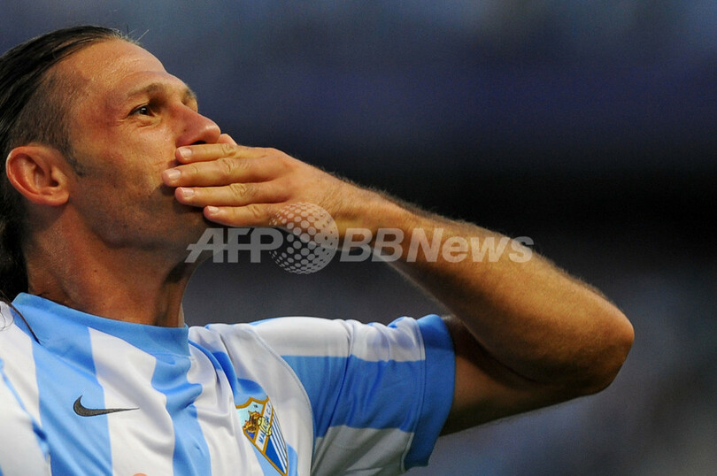 後半4分にサロモン・ロンドン(Solomon Rondon)が挙げた先制点に歓喜するマラガのマルティン・デミチェリス(Martin Demichelis、2012年5月13日撮影)。(c)AFP/JORGE GUERRERO