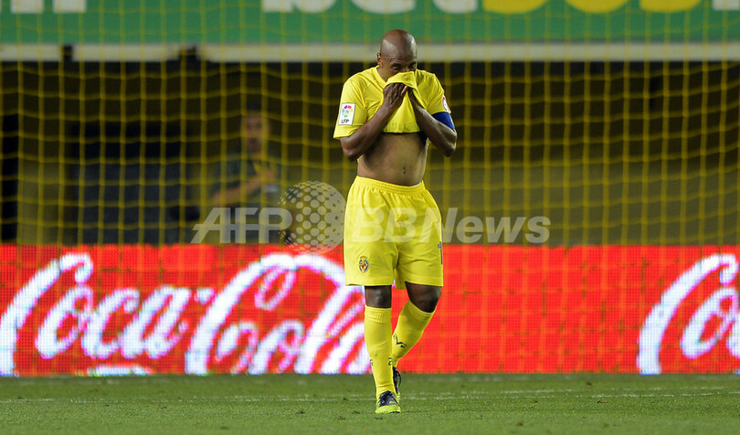 試合に敗れ落胆した様子を見せるビジャレアルのマルコス・セナ(Marcos Senna、2012年5月13日撮影)。(c)AFP/JOSE JORDAN
