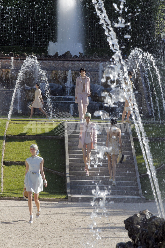 【5月15日 AFP】フランス・パリのベルサイユ宮殿(Palace of Versailles)で14日、カール・ラガーフェルド(Karl Lagerfeld)が手がける「シャネル(CHANEL)」が13年クルーズ・コレクションを発表した。(c)AFP