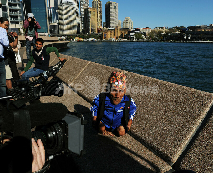 【5月15日 AFP】ギネス世界記録(Guinness World Records)の「世界一身長の低い男性」に認定されたチャンドラ・バハドゥール・ダンギ(Chandra Bahadur Dangi)さん(72)が、故郷のネパールの山村からはるか彼方のオーストラリアを訪問中だ。身長54.6センチのダンギさんは1週間、オーストラリアを巡る予定。(c)AFP