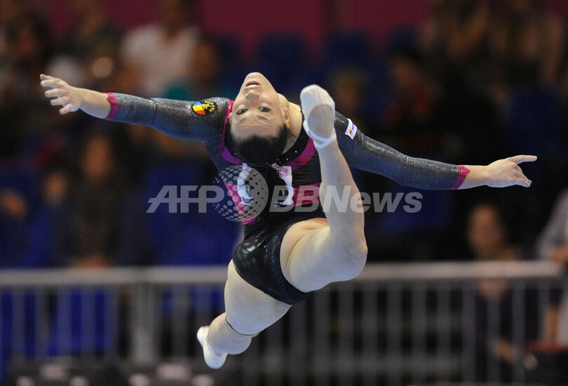 床運動で演技を披露するルーマニアのカタリナ・ポノル(Catalina Ponor、2012年5月10日撮影)。(c)AFP/JOHN THYS