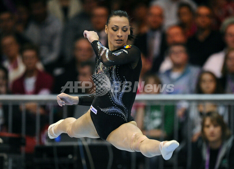 床運動で演技を披露するルーマニアのカタリナ・ポノル(Catalina Ponor、2012年5月13日撮影)。(c)AFP/JOHN THYS
