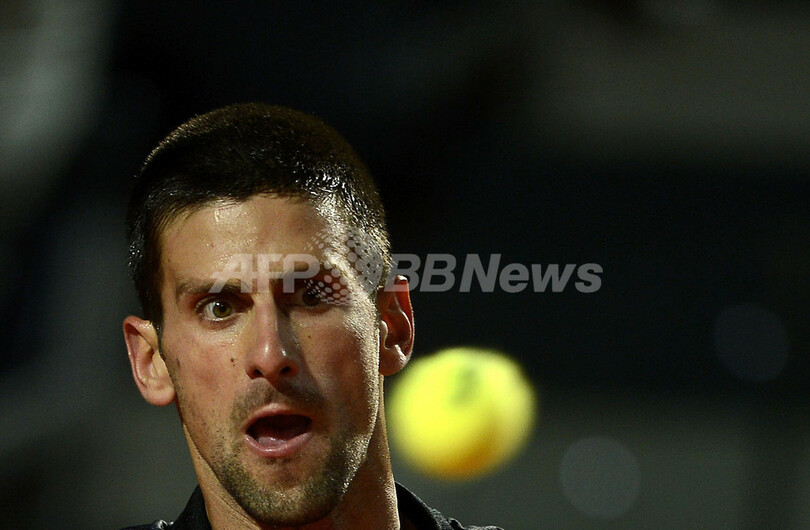 ボールを見つめるノバク・ジョコビッチ(2012年5月15日撮影)。(c)AFP/FILIPPO MONTEFORTE