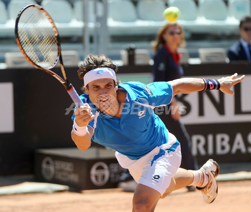 リターンを打つダビド・フェレール(2012年5月17日撮影)。(c)AFP/GABRIEL BOUYS