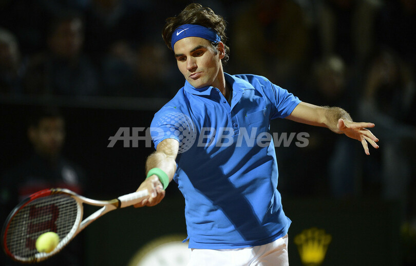 リターンを打つロジャー・フェデラー(2012年5月17日撮影)。(c)AFP/Filippo MONTEFORTE