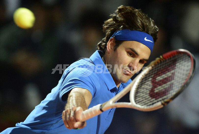 リターンを打つロジャー・フェデラー(2012年5月17日撮影)。(c)AFP/Filippo MONTEFORTE