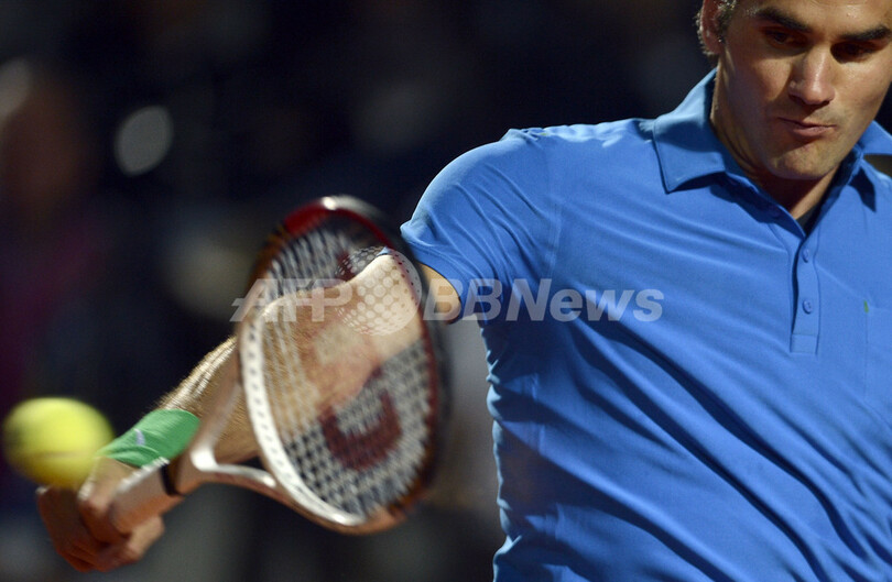 リターンを打つロジャー・フェデラー(2012年5月18日撮影)。(c)AFP/FILIPPO MONTEFORTE