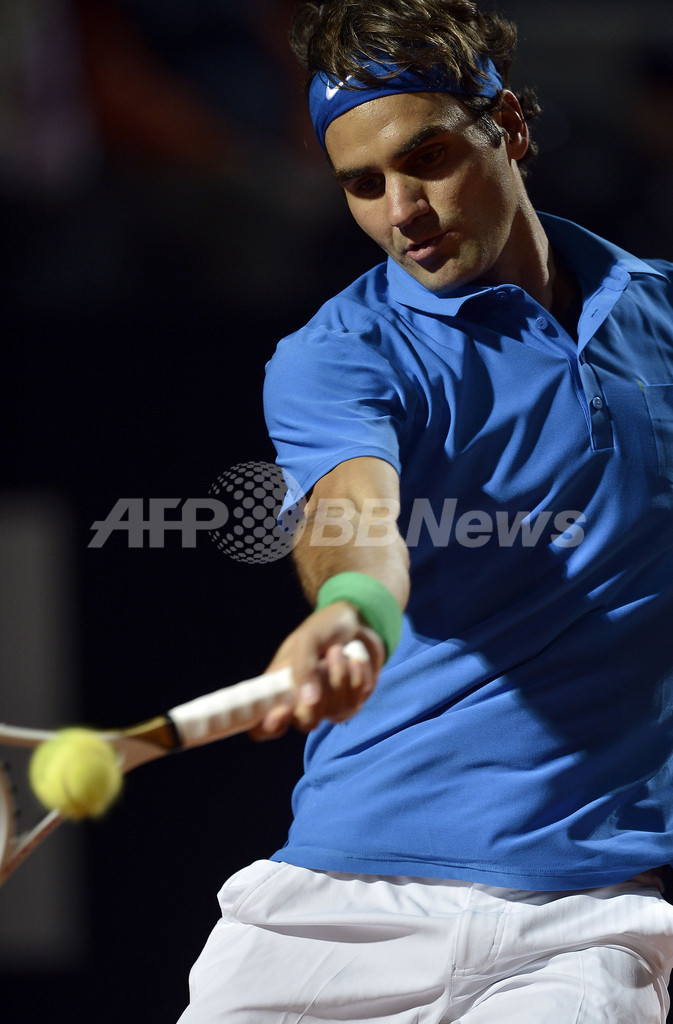リターンを打つロジャー・フェデラー(2012年5月18日撮影)。(c)AFP/FILIPPO MONTEFORTE