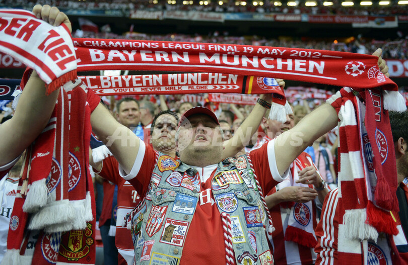 試合開始を待つバイエルン・ミュンヘンのサポーター(2012年5月19日撮影)。(c)AFP/ODD ANDERSEN